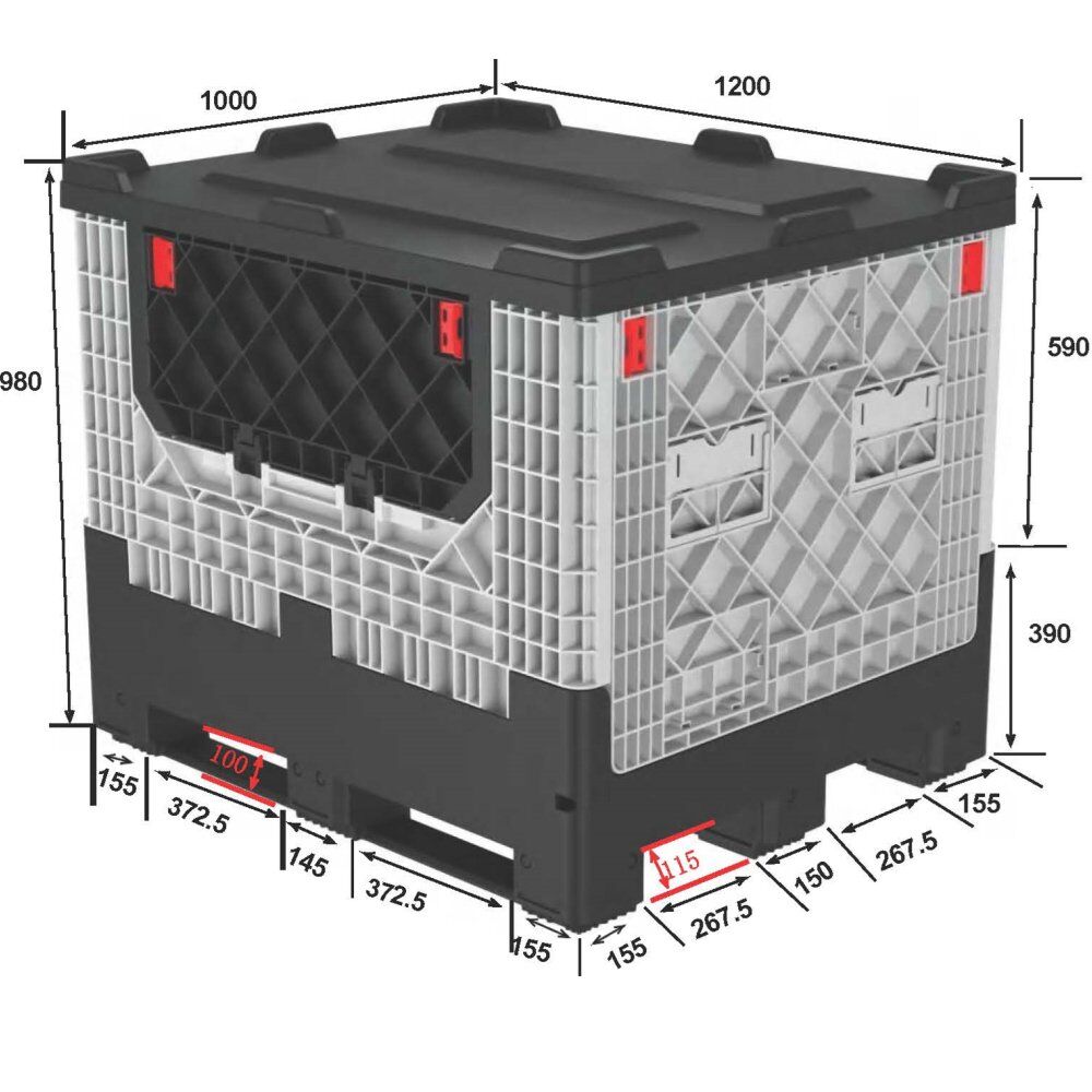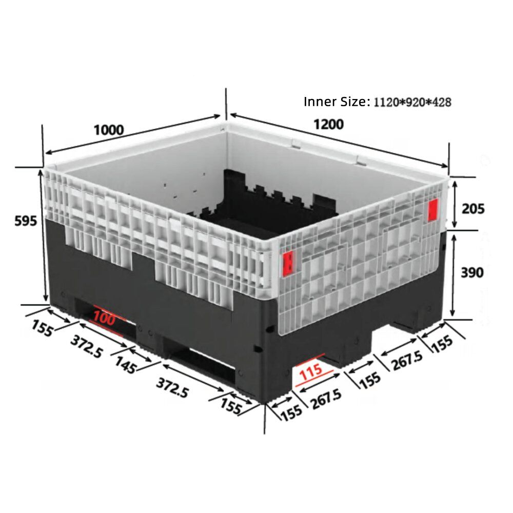 The innovative folding mechanism allows the container to collapse vertically within seconds, reducing its height by 80% when empty for optimal return shipping and storage. Despite its lightweight design (40% lighter than steel alternatives), the reinforced double-walled construction supports static loads up to 5,000 kg and dynamic loads of 1,500 kg, ensuring safe transport of fragile or high-value goods. UV-stabilized and chemical-resistant HDPP withstands extreme temperatures (-30°C to +80°C), harsh cleaning agents, and outdoor storage without warping or corrosion.